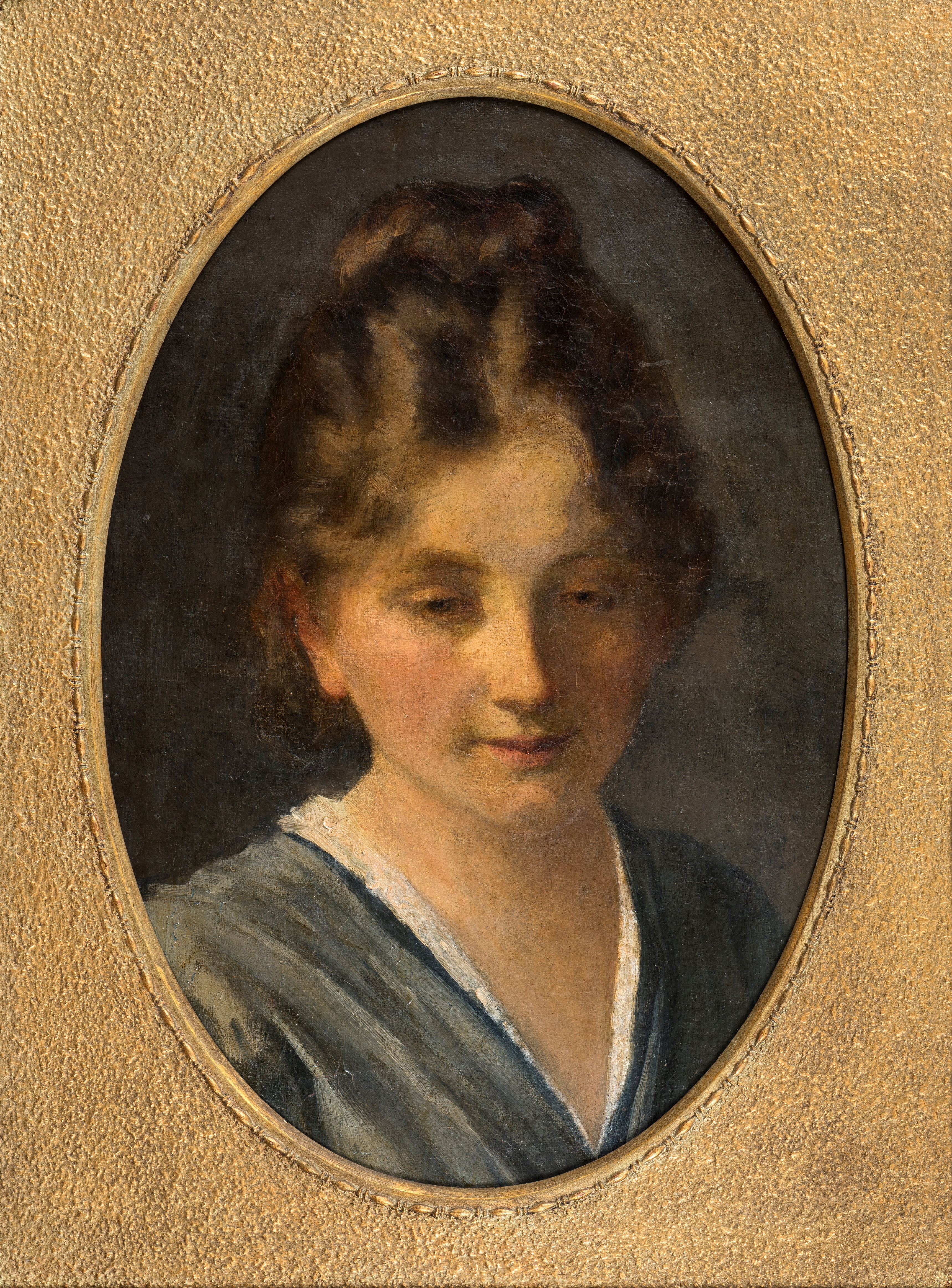 Olie på lærred, 44,5 x 32,5 cm (oval indramning)