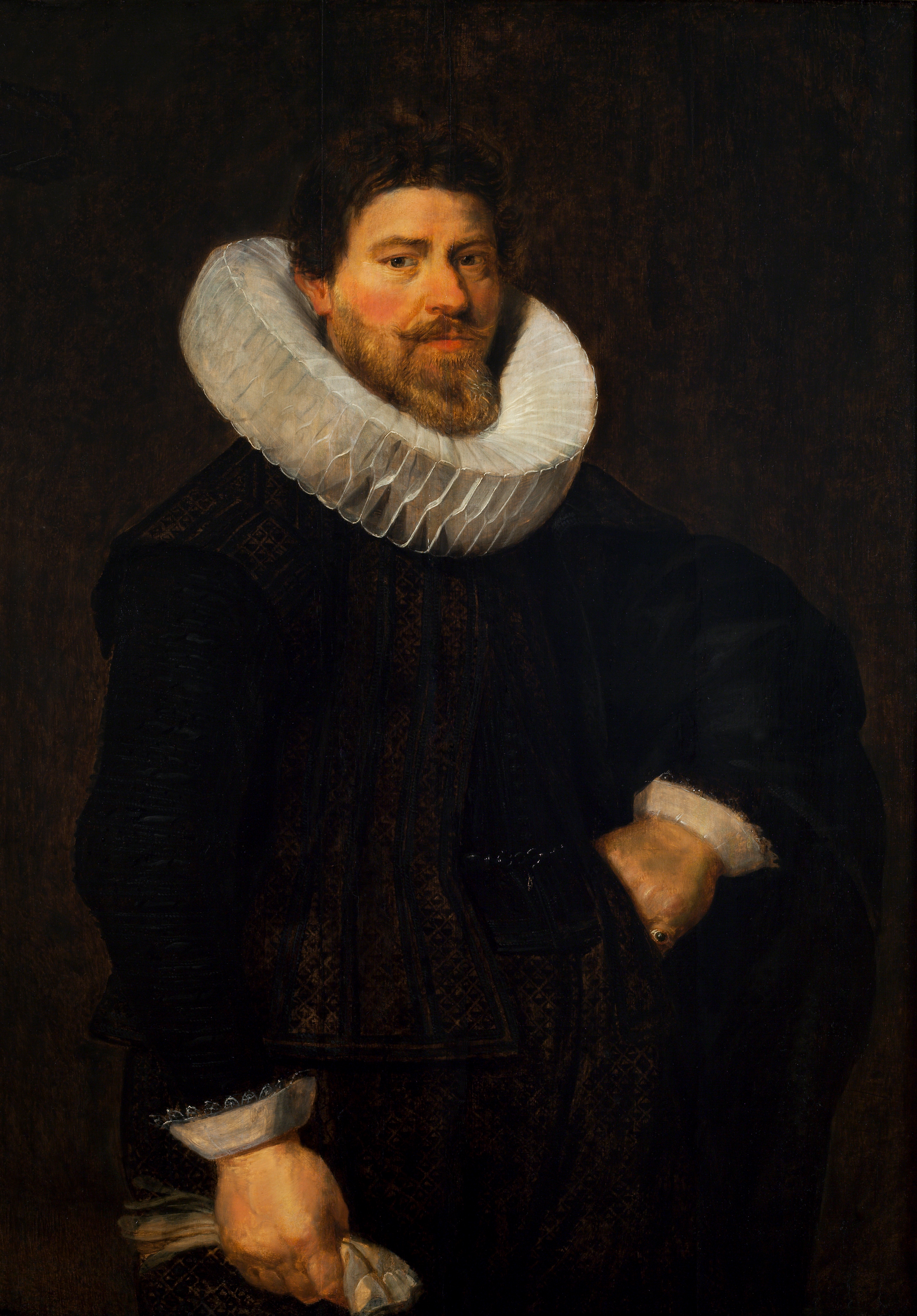 Maleriet blev oprindelig købt i Paris som et værk af den flamske barokmaler Peter Paul Rubens og dateret 1616-1620. Det har senere været tilskrevet Anthony van Dyck som et ungdomsarbejde. Portrættet er et knæbillede i naturlig størrelse. Over den sorte, fint mønstrede dragt, bærer manden en bred pibekrave, der var særlig udbredt i anden halvdel af det 16. århundrede. Stilen er dæmpet, men udtryksfuld, og den mørke palet karakteristisk for det borgerlige portrætmaleri i Nederlandene i 1600-tallet. Portrættet har muligvis udgjort det ene af et par. I den hollandske guldalder var det almindeligt, at nygifte par lod sig portrættere indenfor to år efter ægteskabets indgåelse. Ifølge det traditionelle kompositionsskema for dobbeltportrætter af ægtefolk, blev manden afbildet til venstre set fra beskuerens synsvinkel og kvinden til højre. Par kunne også lade sig portrættere på et senere tidspunkt, men da var det ofte forbundet med andre store begivenheder i livet, som for eksempel flytning til et nyt hus eller opnåelse af en højere social position.