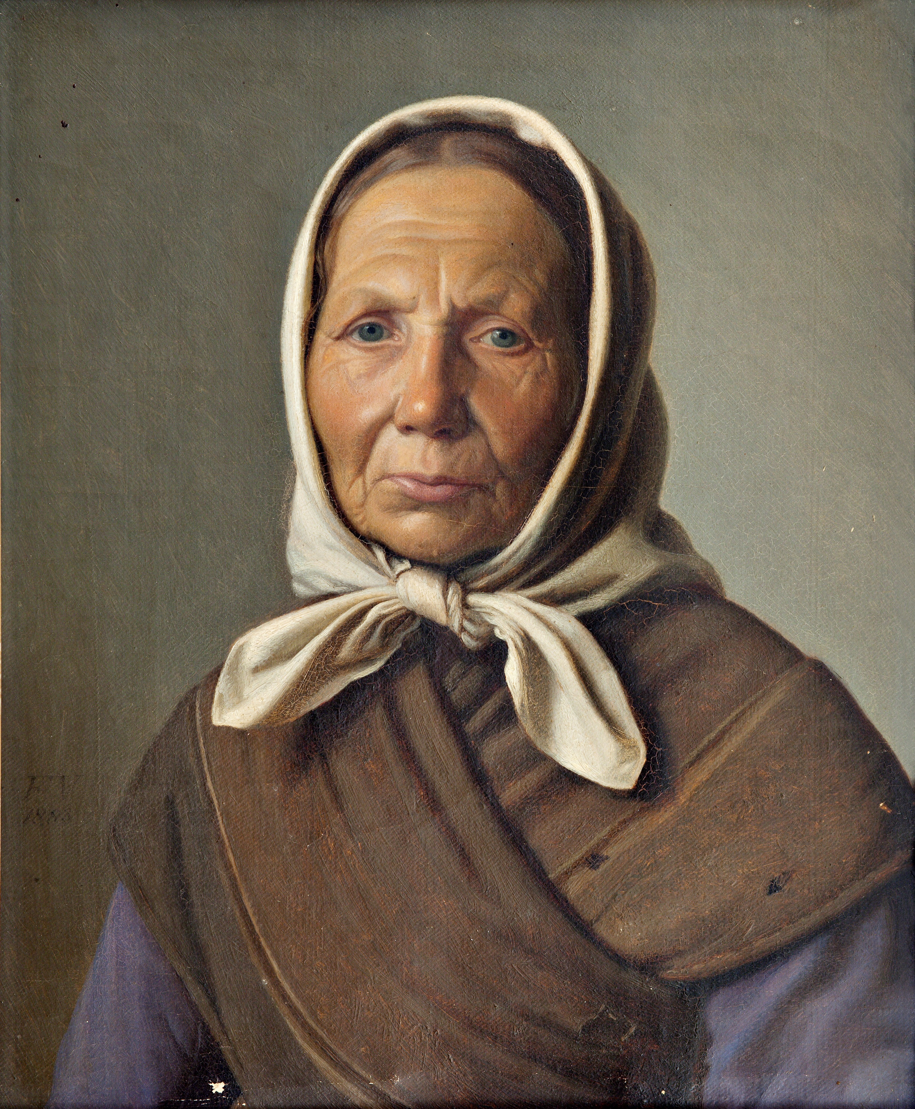 Frederik Vermehren havde en evne til at iagttage sine motiver med et særligt sanddrueligt blik, hvilket tydeligt ses i hans portrætter af forskellige folketyper. I dette brystbillede af en fiskerkone fra Hornbæk har kunstneren søgt at vise den ældre kvindes personlighed ved at afbilde hende efter virkelighedens og ikke skønhedens principper. Det hårde og til tider kummerlige liv som fiskerkone er indprentet i kvindens vindblæste kinder og slidte tøj. Hendes blik er præget af en alvorlig vemodighed, der forstærkes af de bekymrede rynker i panden. Med denne gengivelse af den portrætterede søgte Vermehren at vise, hvordan miljøet former menneskets identitet.